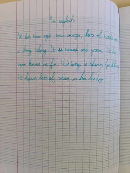 Les élèves de Mr Hastings ont rédigé une description. Ils ont tout d'abord imaginé et dessiné un monstre. Le thème les a tout de suite inspiré. Ensuite, ils ont écrit un petit texte afin de décrire leur monstre. Puis ils ont fait de même en anglais.